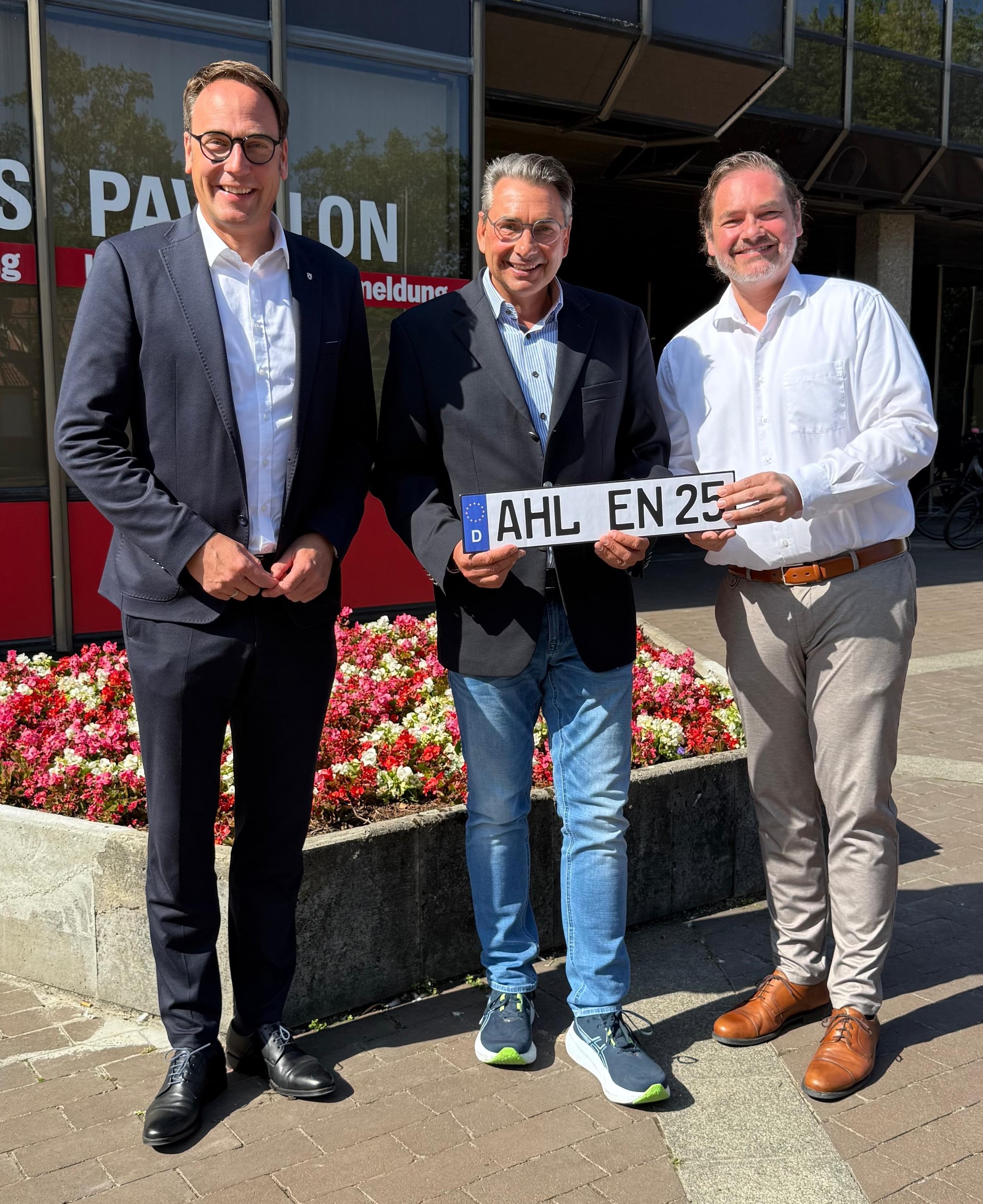 Bürgermeister Dr. Alexander Berger warb zum Abschluss des Gesprächs für die Initiative von Ihm und weiterer 36 Bürgermeisterinnen und Bürgermeister, die sich dafür einsetzen, dass Mittelstädten eine eigene Kennung im Kennzeichen erlaubt wird. Ein Kennzeichen „AHL“ sehe er keinesfalls als Absage an den Kreis Warendorf, sondern vielmehr als zusätzliche Identifikation der Bürgerinnen und Bürger mit ihrer Heimat.